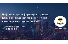 30 ноября Национальный Центр ГЧП при участии Билайн Бизнес (ПАО «Вымпелком») проведет online-эфир «Цифровая трансформация городов. Какие IT-решения можно и нужно внедрять на принципах ГЧП?».